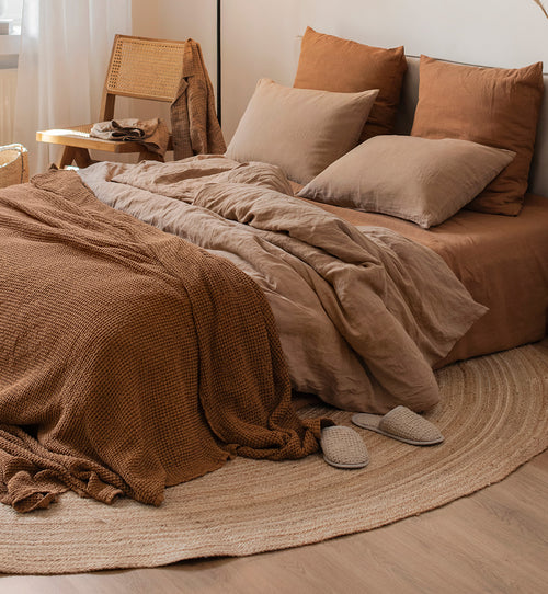 This linen bed sheet cover is wonderful, it's high quality linen. I love the look of the cinnamon color. Shipping was very fast to the US and the packaging was adorable!